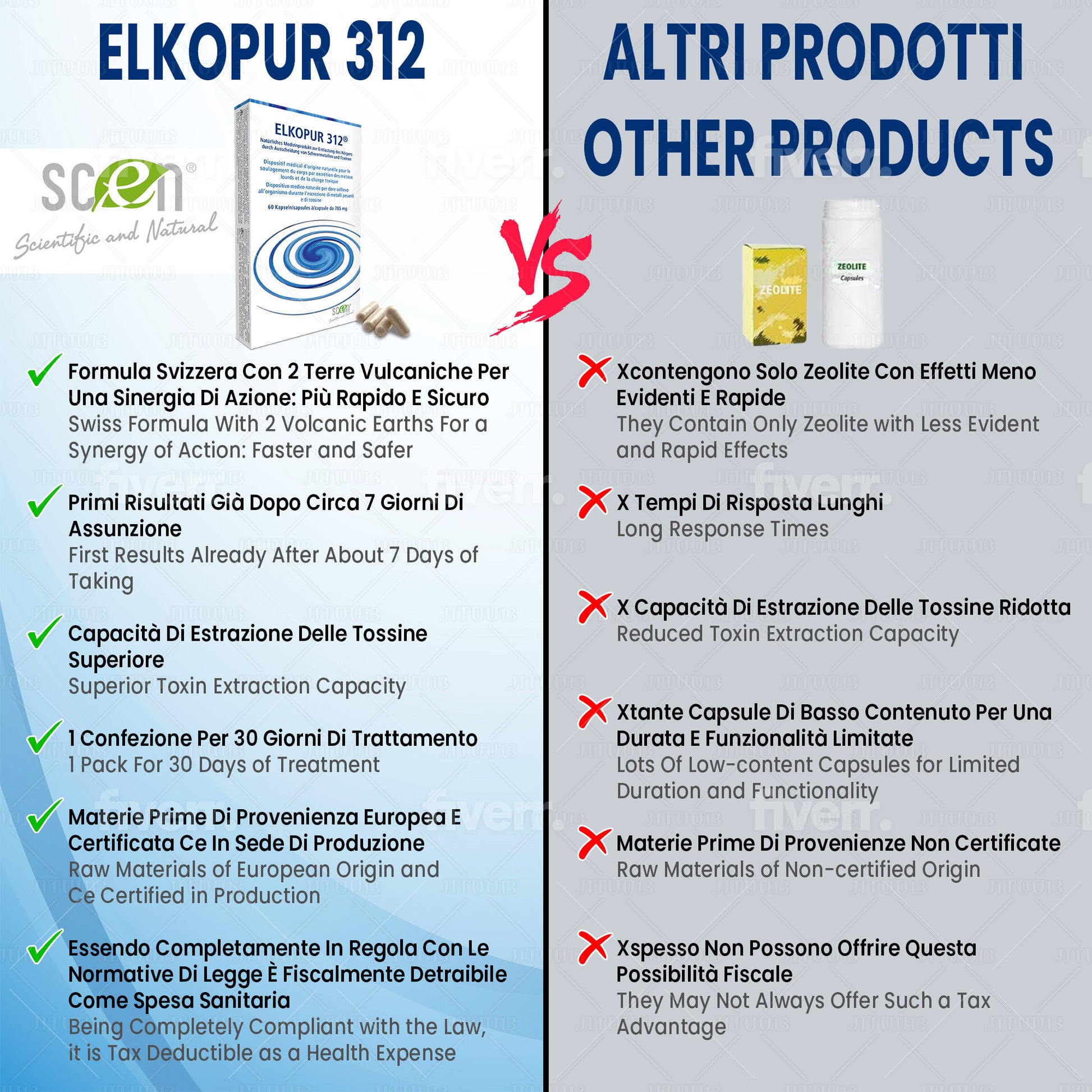 Elkopur312 is a natural product designed to detoxify the gastrointestinal tract and give relief to the liver thanks to the elimination of heavy metals and toxins of various kinds.